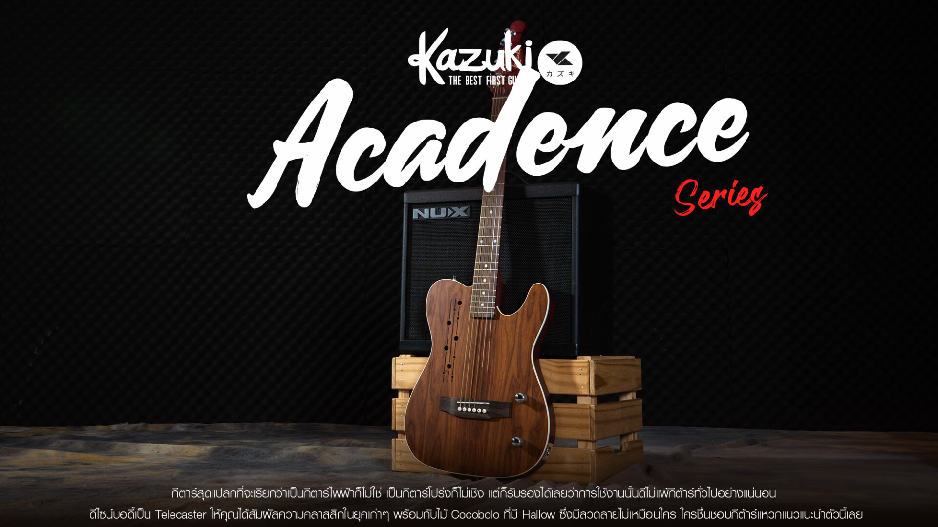 Kazuki Acadence Series กีตาร์สุดแปลกที่จะเรียกว่าเป็นกีตาร์ไฟฟ้าก็ไม่ใช่ เป็นกีตาร์โปร่งก็ไม่เชิง แต่ก็รับรองได้เลยว่าการใช้งานนั้นดีไม่แพ้กีต้าร์ทั่วไปอย่างแน่นอน ดีไซน์บอดี้เป็น Telecaster ให้คุณได้สัมผัสความคลาสสิกในยุคเก่าๆ พร้อมกับไม้ Cocobolo ที่มี Hallow ซึ่งมีลวดลายไม่เหมือนใคร ใครชื่นชอบกีต้าร์แหวกแนวแนะนำตัวนี้เลย